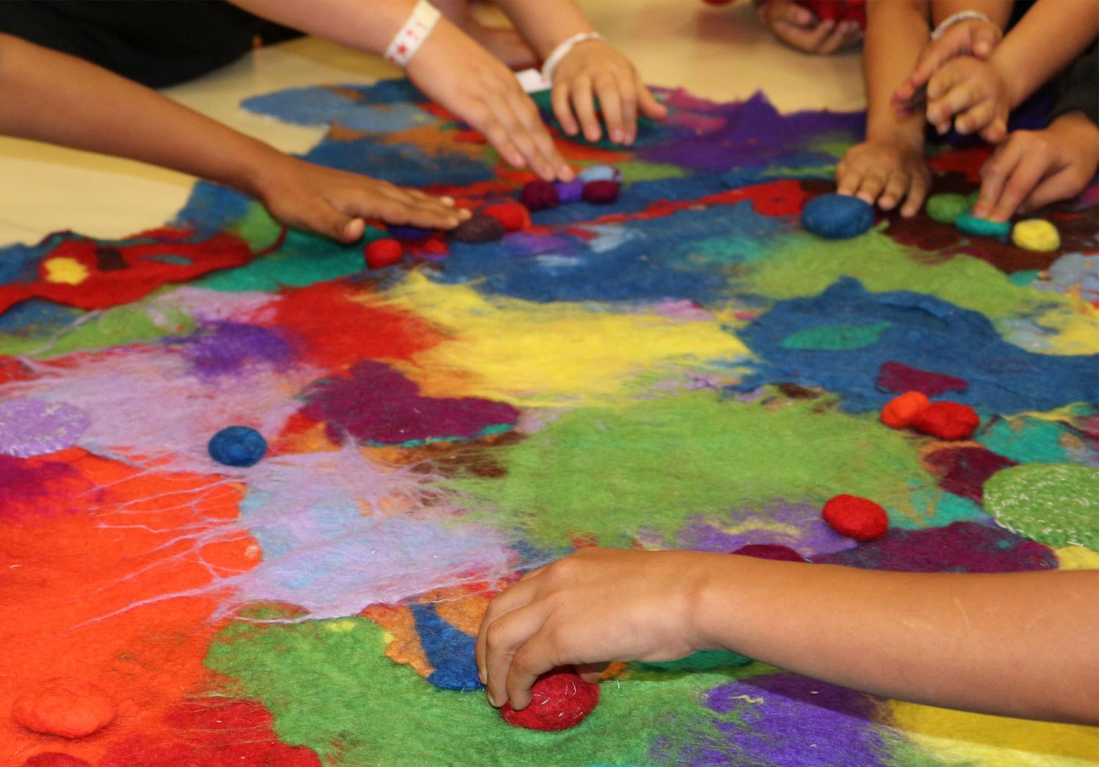 I joined artist Claire Pendrigh on a week long artists residency at Djidi Djidi Aboriginal School in Bunbury, Western Australia. We brought a hands on approach to the residency, teaching every year group how to felt, a wonderfully tactile experience that involves rubbing wool with hot soapy water to bond the fibers together. The students loved it.